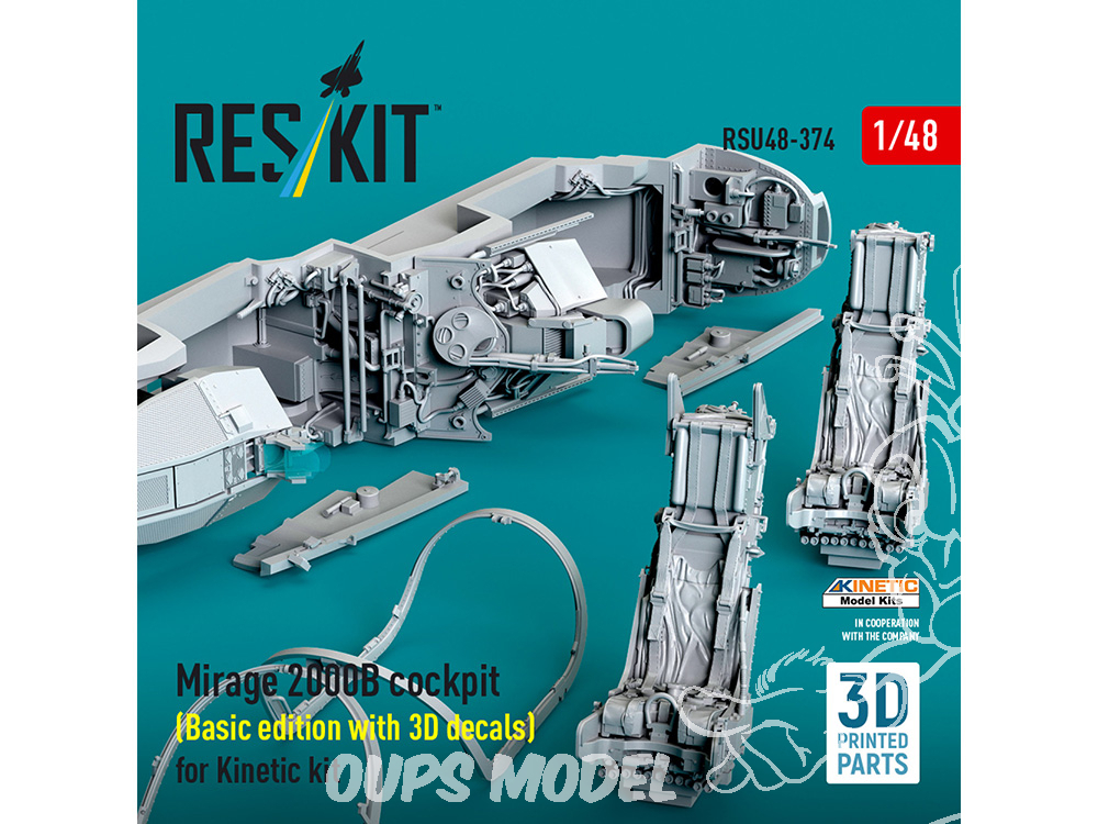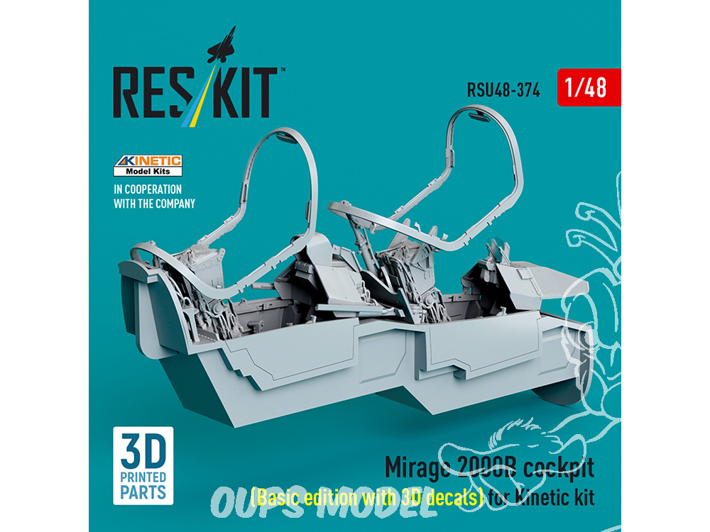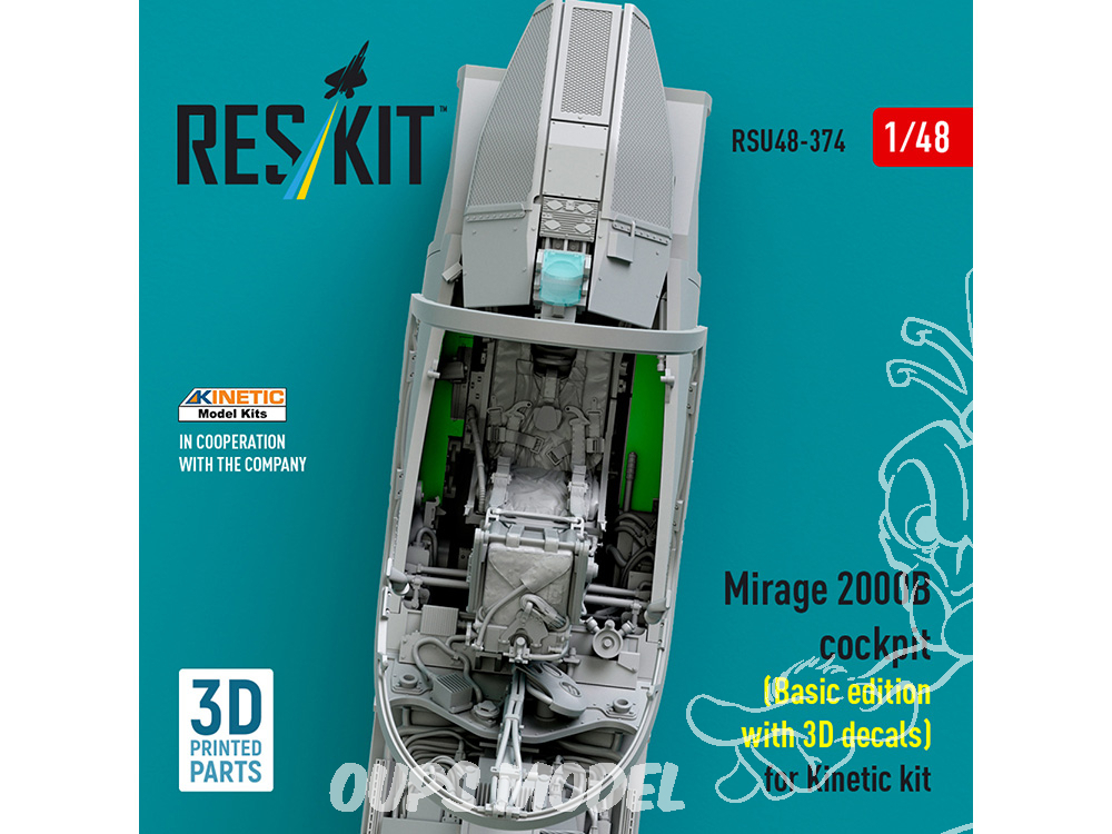 ResKit avion RSU48-0374 Cockpit Mirage 2000B édition de base avec décalcomanies 3D pour kit Kinetic imprimé en 3D 1/48