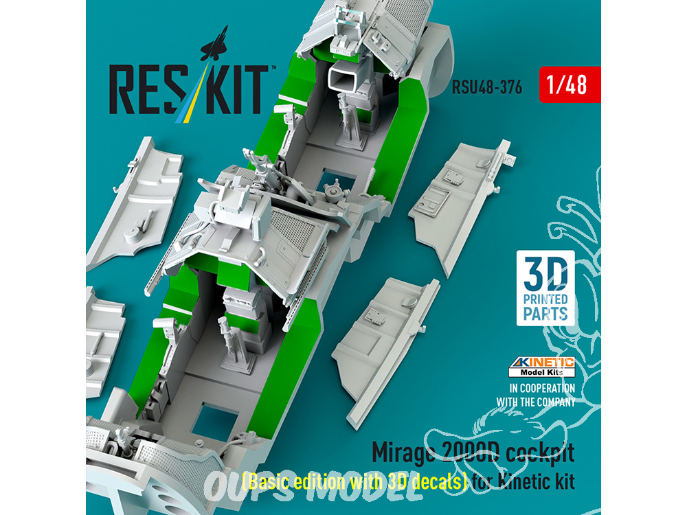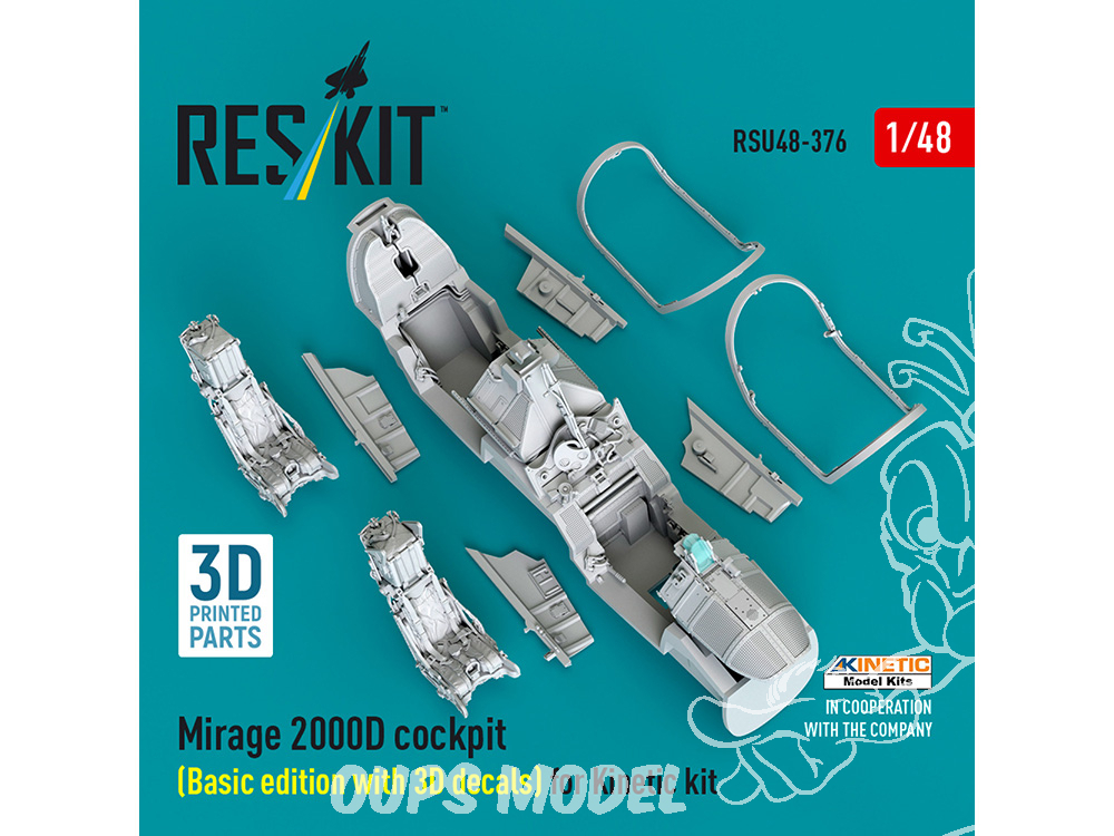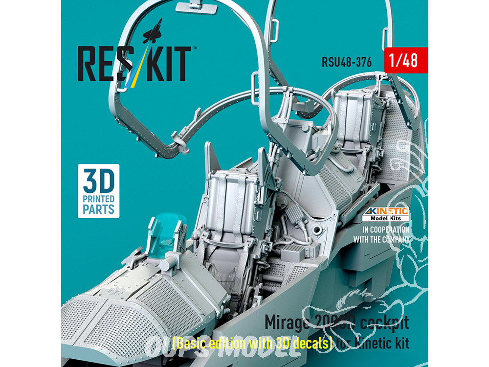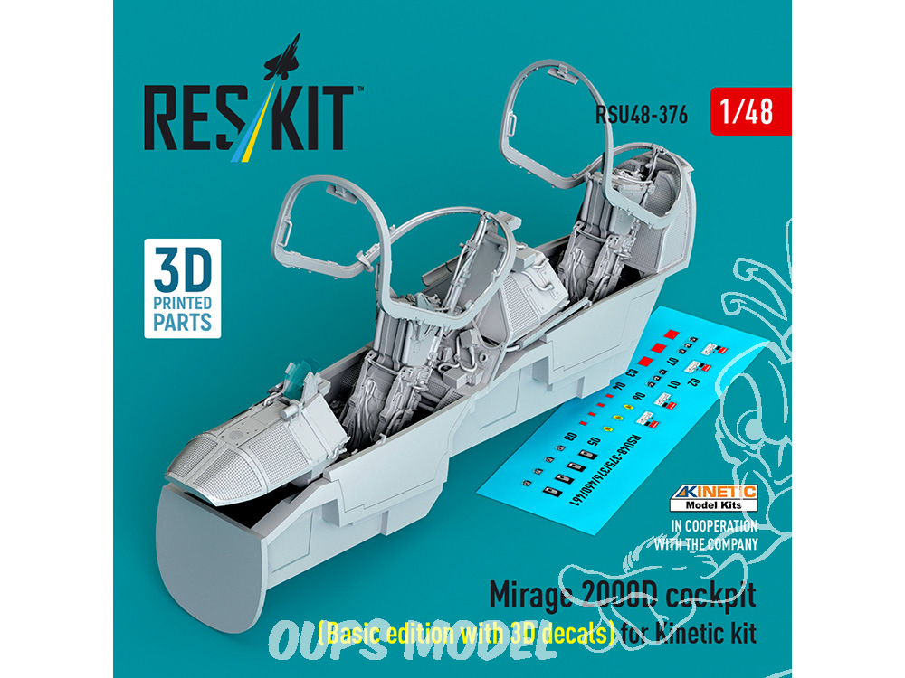 ResKit avion RSU48-0376 Cockpit Mirage 2000D édition de base avec décalcomanies 3D pour kit Kinetic imprimé en 3D 1/48
