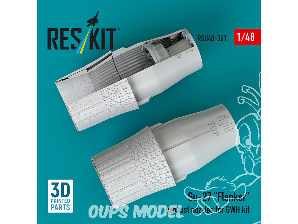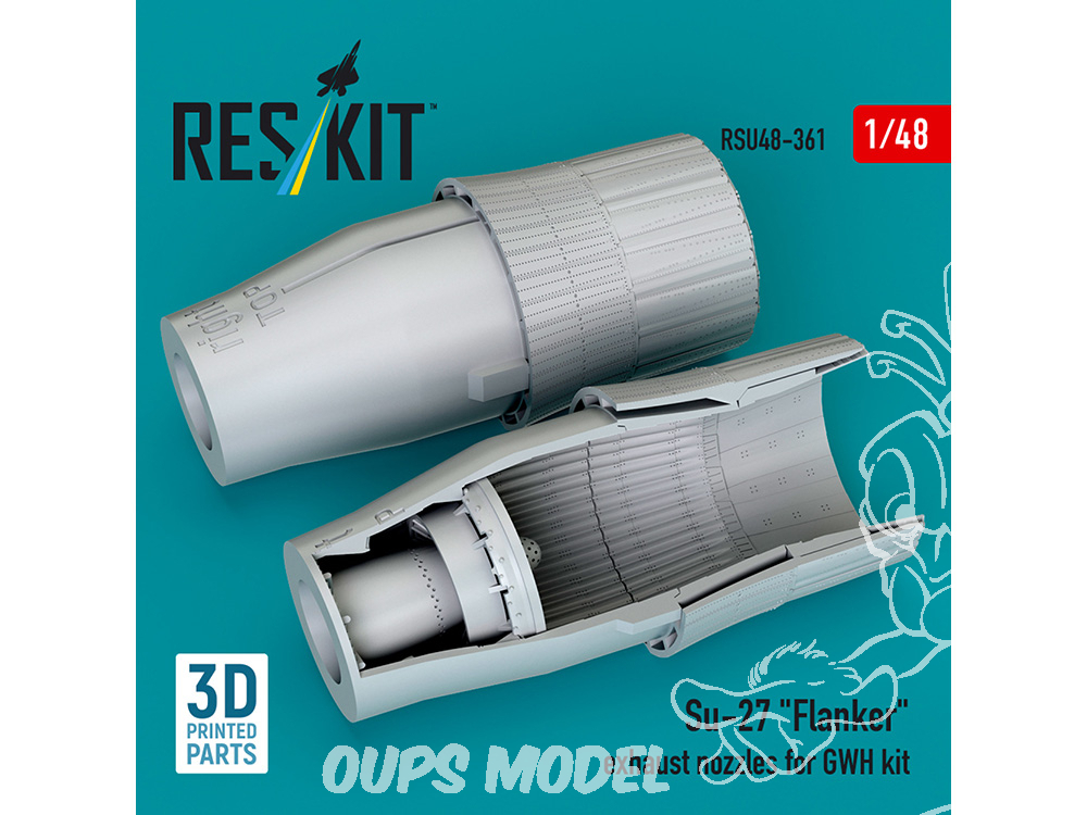 ResKit avion RSU48-0361 Tuyères d'échappement Su-27 Flanker pour kit GWH imprimées en 3D 1/48