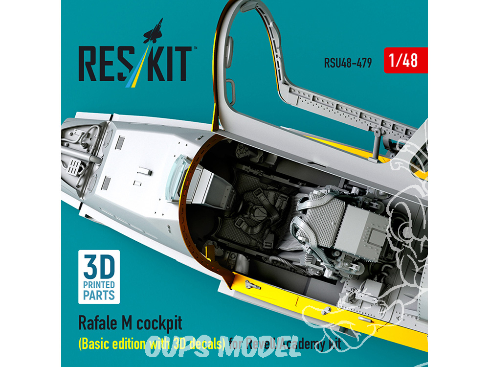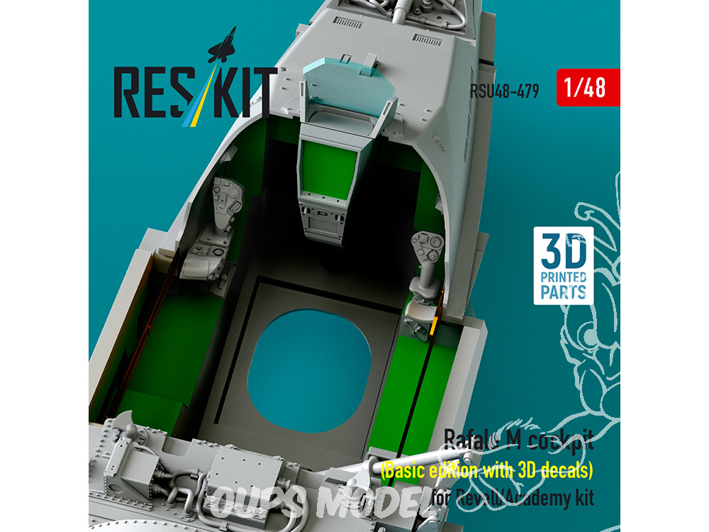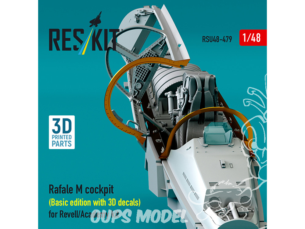 ResKit avion RSU48-0479 Cockpit Rafale M édition de base avec décalcomanies 3D pour kit Revell/Academy imprimé en 3D 1/48