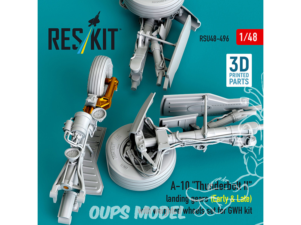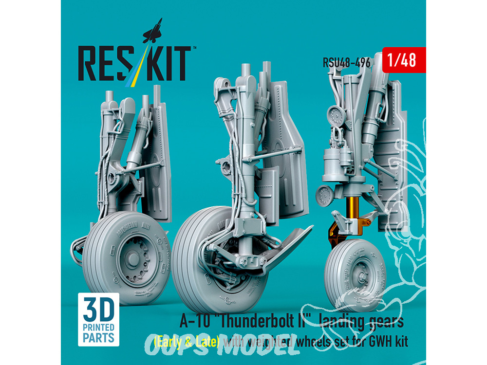 ResKit avion RSU48-0496 Trains d'atterrissage A-10 Thunderbolt II Early & Late roues lestées kit GWT imprimé en 3D 1/48