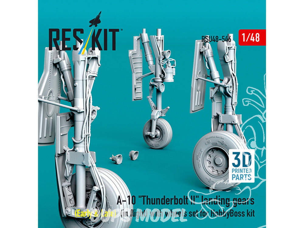 ResKit avion RSU48-0546 Trains d'atterrissage A-10 Thunderbolt II Early & Late avec roues pour kit HobbyBoss imprimé en 3D 1/48