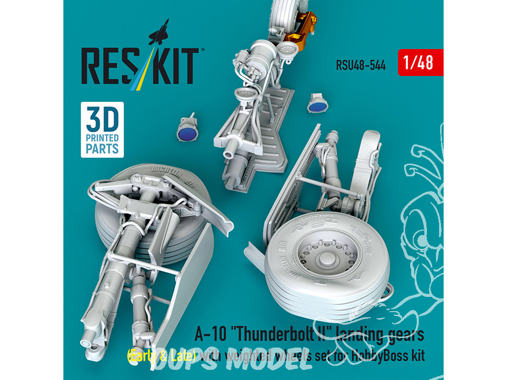 ResKit avion RSU48-0544 Trains d'atterrissage A-10 Thunderbolt II Early & Late roues lestées kit HobbyBoss imprimé en 3D 1/48
