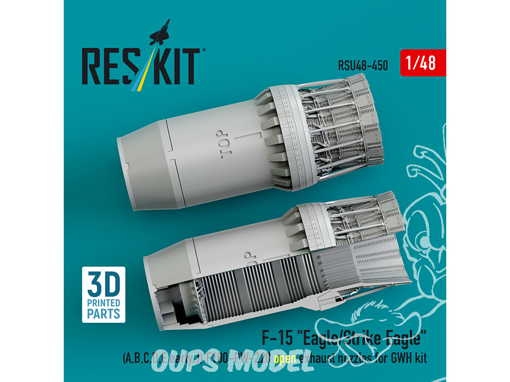 ResKit avion RSU48-0450 Tuyères d'échappement ouvertes F-15A, B, C, D, E early, Kit GWH 1/48