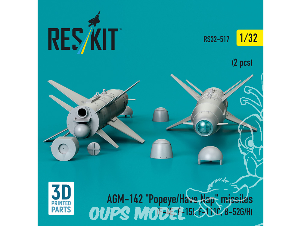 ResKit kit RS32-0517 AGM-142 "Popeye/Have Nap" missiles 2 pcs imprimé en 3D 1/32