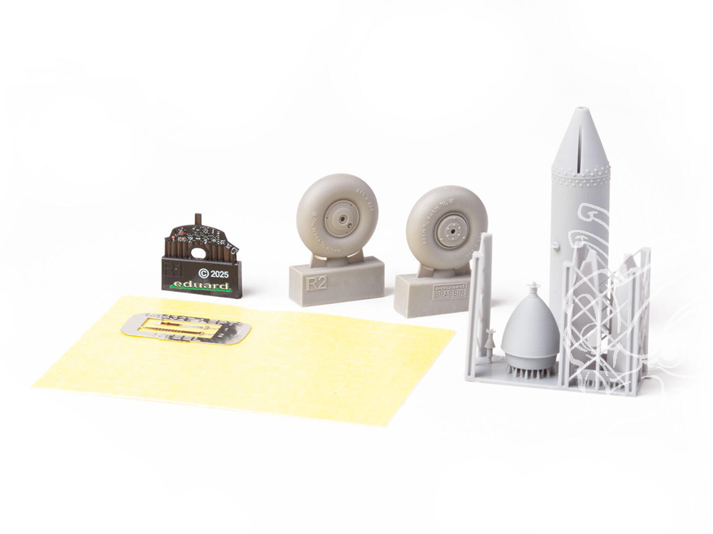 Set incluant le tableau de bord en résine pré-peint ainsi que les Harnais (644327), roues (6481116) et bombe Japonaise 800kg PRINT (6481121).