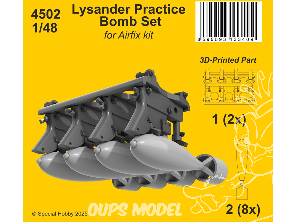 Le Lysander d'Airfix propose bien quelques bombes d'entraînement fixées à ses ailes courtes, mais notre kit imprimé en 3D offre des bombes d'entraînement avec un niveau de détail et une qualité générale bien supérieurs. Ces bombes, avec leurs supports, sont également compatibles avec d'autres maquettes d'avions de la RAF ou de la FAA.pour Kits: