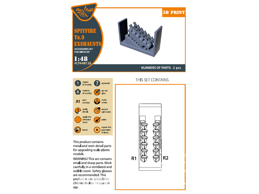 Clear Prop kit d'amélioration CPA48126 Echappement d'un Spitfire Tr.9 Kit Airfix 1/48