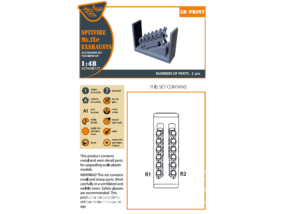 Clear Prop kit d'amélioration CPA48127 Echappement d'un Spitfire Mk.IXe Kit Airfix 1/48