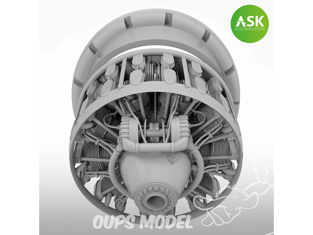 Conçu par Štefan Šerfözö. Aucun élément en plastique injecté ne peut rivaliser avec le niveau de détail offert par l’impression 3D moderne. Ce moteur est basé sur une analyse approfondie et des scans 3D de véritables moteurs Wright R-3350 Cyclone, permettant de reproduire les moindres détails tels que les câbles d’allumage, les cylindres et les nervures fines, souvent simplifiés ou absents sur les pièces classiques. Il apporte ainsi un niveau de réalisme exceptionnel à votre maquette.