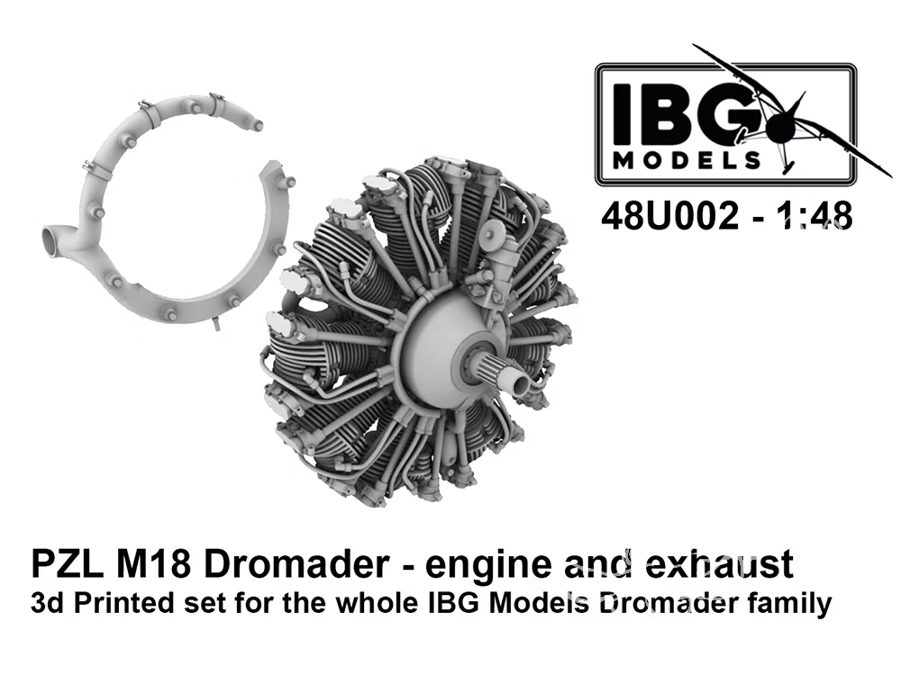 IBG maquette militaire 48U002 Moteur et échappement pour PZL M18 Dromader Kit imprimé en 3D 1/48