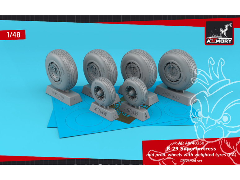 Armory Models kit d'amélioration avion AW48350 Roues avec pneus écrasés (RA) B-29 Superfortress milieu de production 1/48