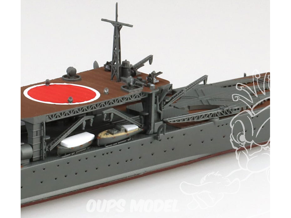 Le « Chiyoda », qui a été construit comme ravitailleur d’hydravions comme son sister-ship Chitose et qui a été transformé en ravitailleur de sous-marins de poche et en porte-avions, est désormais disponible sous forme de kit de maquette en plastique à l’échelle 1/700 dans sa version transformée en ravitailleur de sous-marins de poche capable d’emporter 12 petits sous-marins de poche, les « Ko-hyoteki ». Avec une configuration de pièces axée sur les points essentiels, il est simple, facile à assembler et peut être reproduit avec précision. Divers équipements tels que les canons antiaériens et les mitrailleuses ont été nouvellement conçus et ajoutés. Il exprime efficacement la précision de l’échelle 1/700.