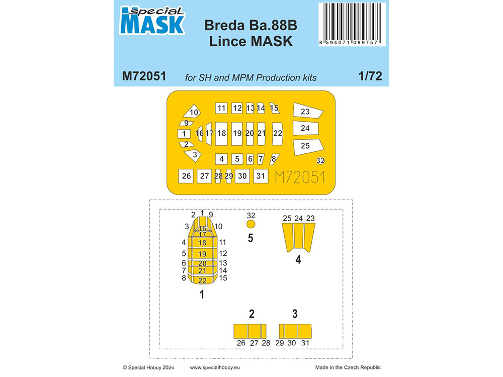 Special Hobby Masque avion M72051 Pour Breda Ba.88B Lince kit MPM 1/72