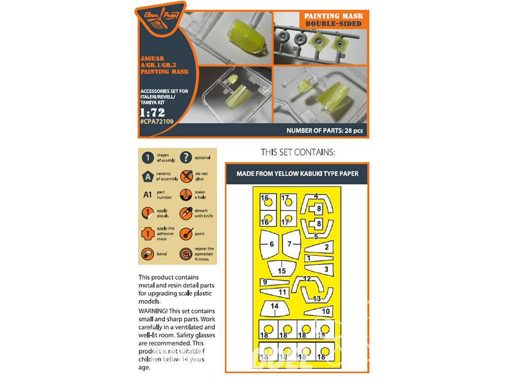 Clear Prop caches CPA72109 Masque de peinture Jaguar A/GR.1/GR.3 papier kabuki jaune pour maquettes Italeri/Revell/Tamiya 1/72