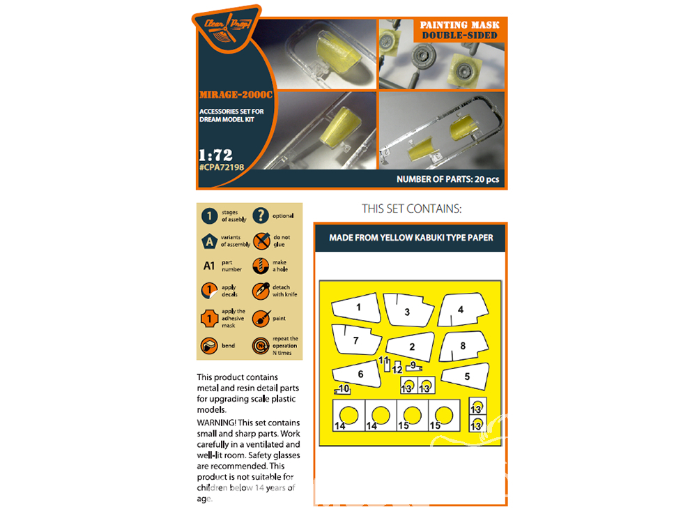 Clear Prop masque peinture CPA72198 Double Pour Mirage-2000C papier kabuki jaune kits Dream model 1/72