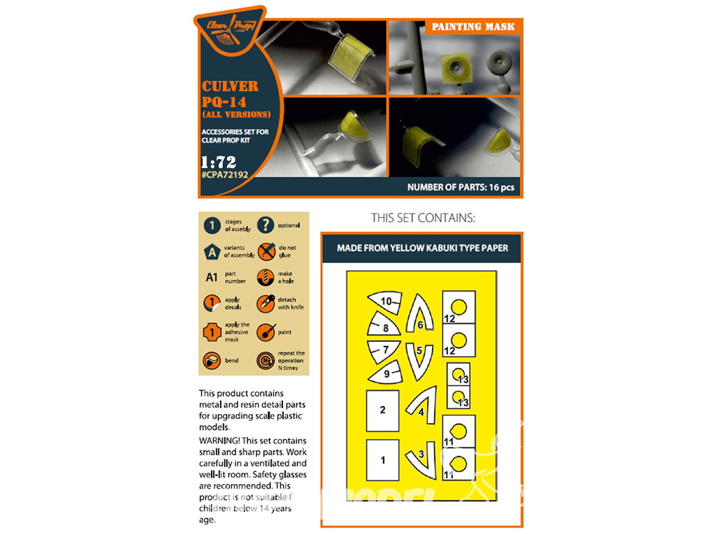 Clear Prop CPA72192 Masque de peinture Culver PQ-14 sur papier kabuki jaune pour kits CP 1/72