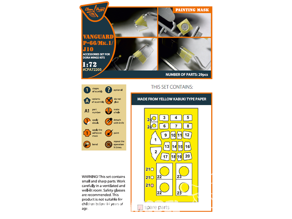 Clear Prop CPA72205 Masque de peinture Vanguard P-66/Mk.1/J10sur papier kabuki jaune pour kits DW 1/72