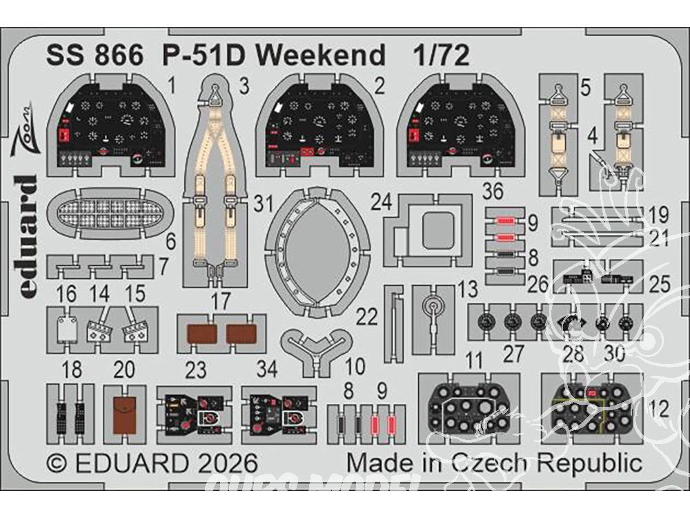 Eduard photodecoupe avion SS866 Zoom amélioration P-51D WeekEnd Eduard 1/72