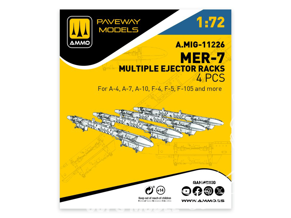 Ammo Mig Paveway Models A.MIG-11226 MER-7 Multiple Ejector Racks x4 1/72