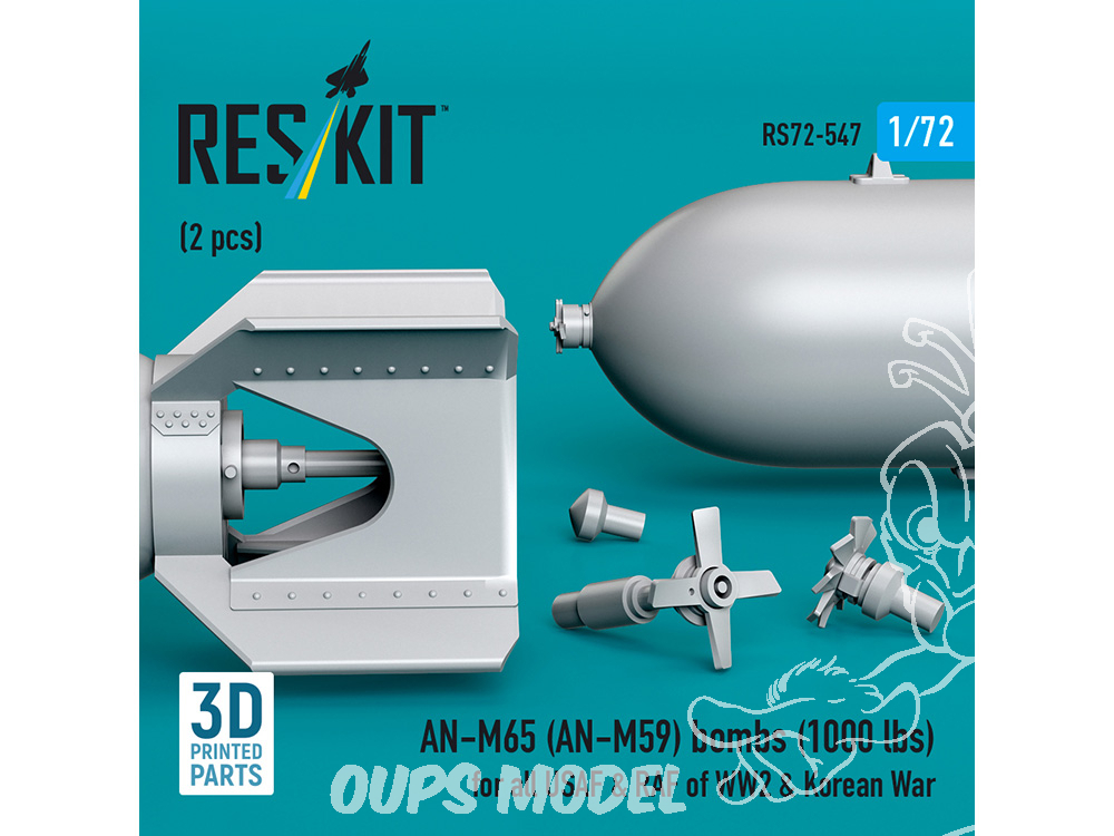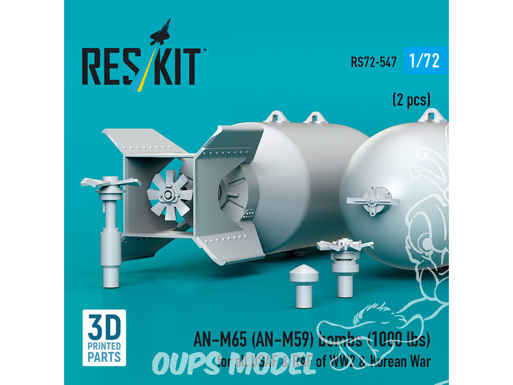 ResKit kit RS72-0547 Bombes AN-M65 AN-M59 2 pièces 1000 lbs pour tous les USAF et RAF 1/72