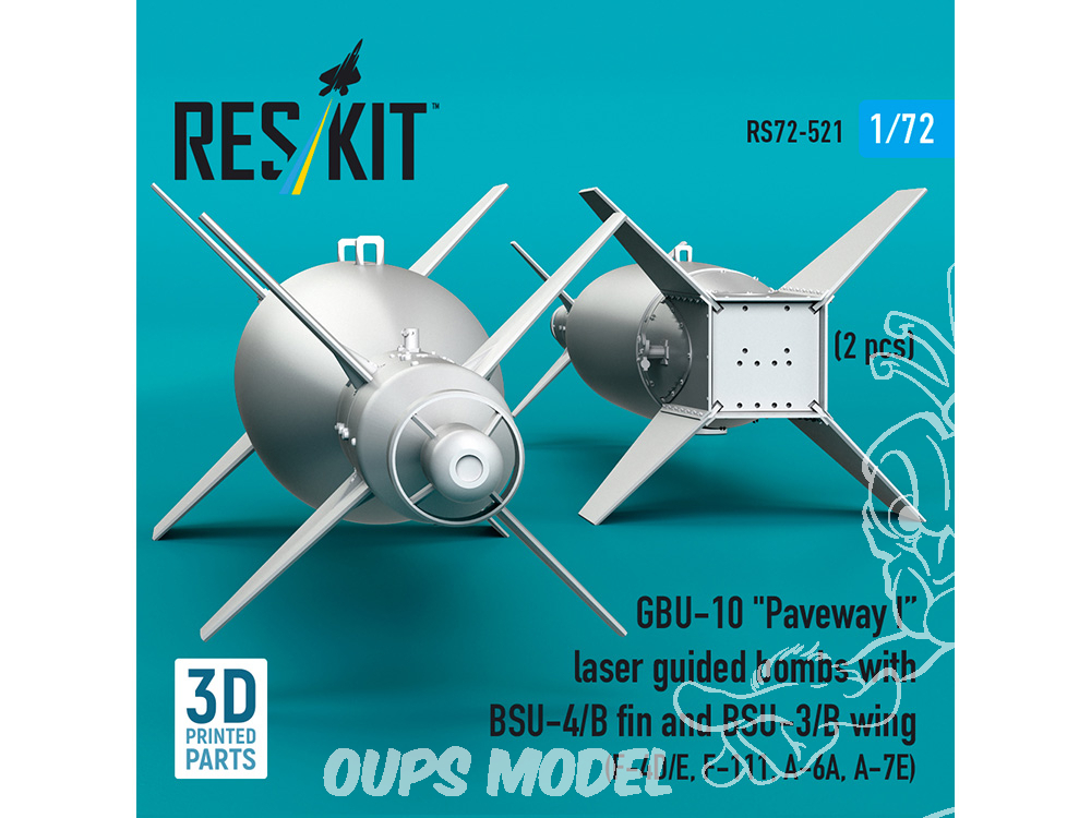 ResKit kit RS72-0521 Bombes guidées laser GBU-10 « Paveway I » avec dérive BSU-4/B et aile BSU-3/B, 2 pièces 1/72