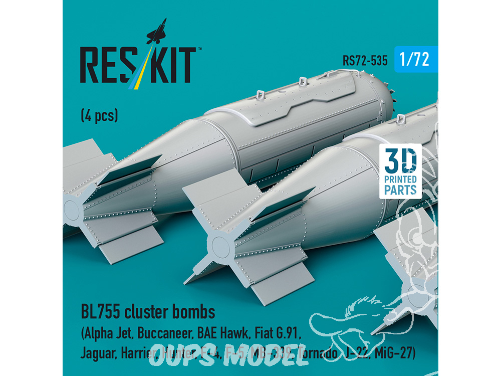 ResKit kit RS72-0535 Bombes à fragmentation BL755, 4 pièces imprimées en 3D 1/72