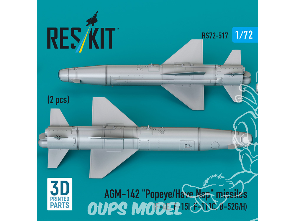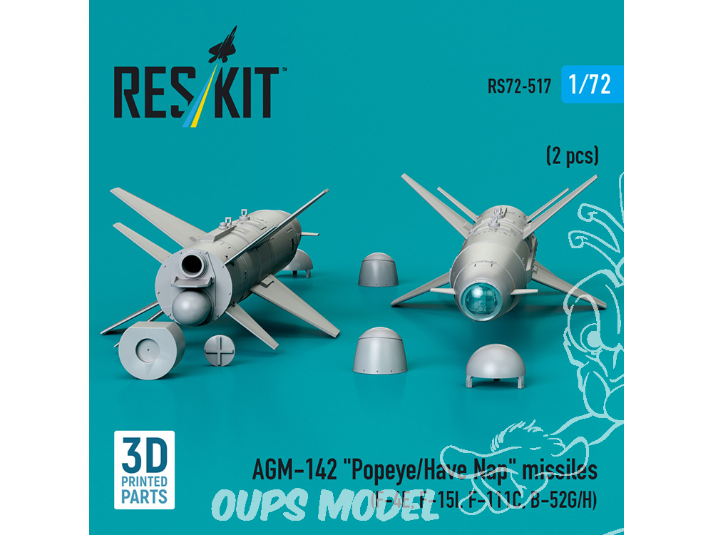 ResKit kit RS72-0517 AGM-142 "Popeye/Have Nap" missiles 2 pcs imprimé en 3D 1/72