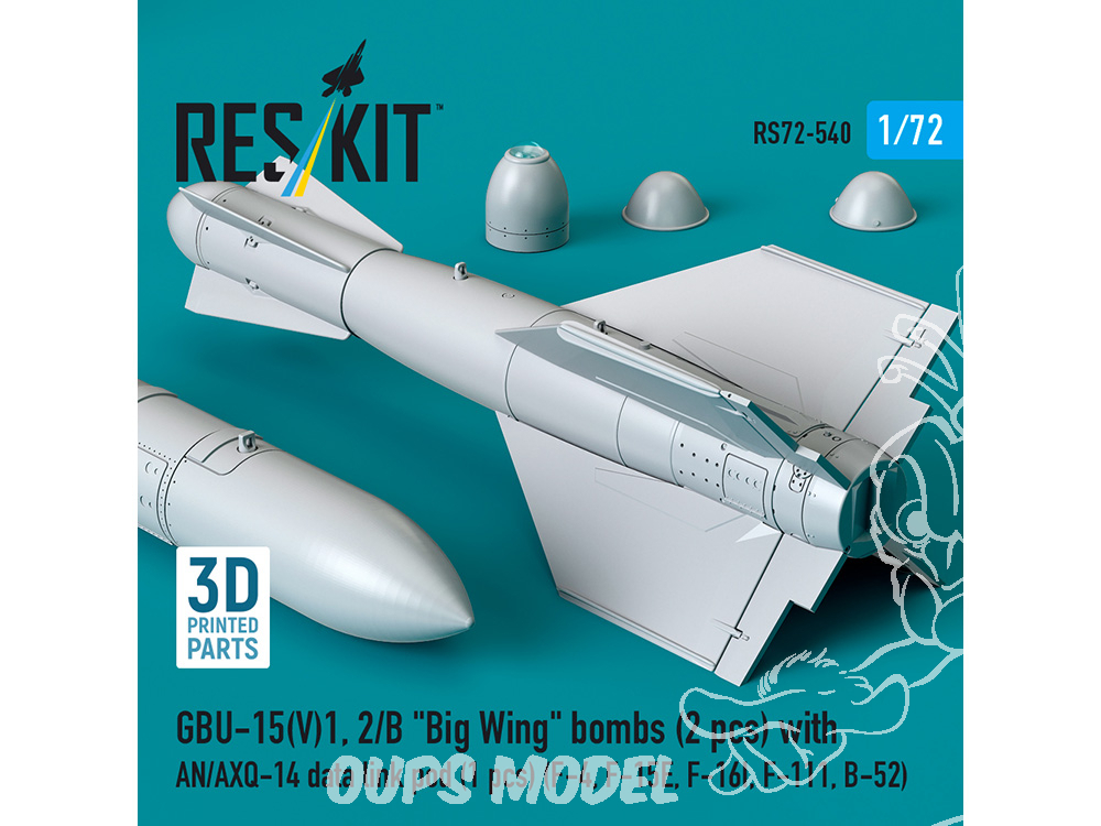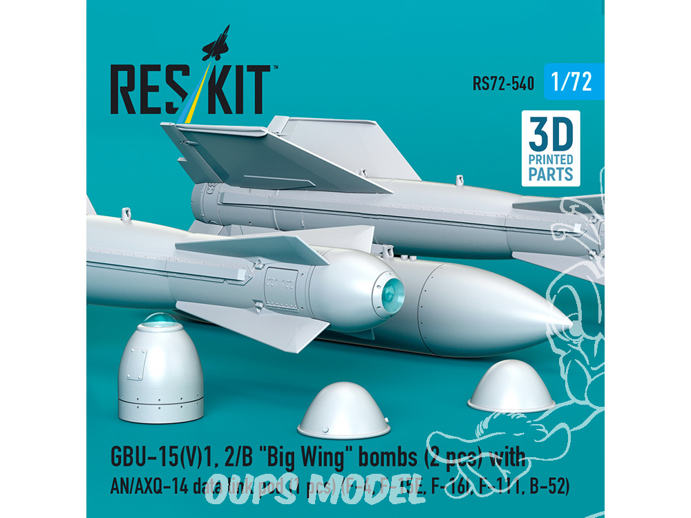 ResKit kit RS72-0540 GBU-15V1, 2/B "Big Wing" bombes 2 pièces avec pod de liaison de données AN/AXQ-14 1/72