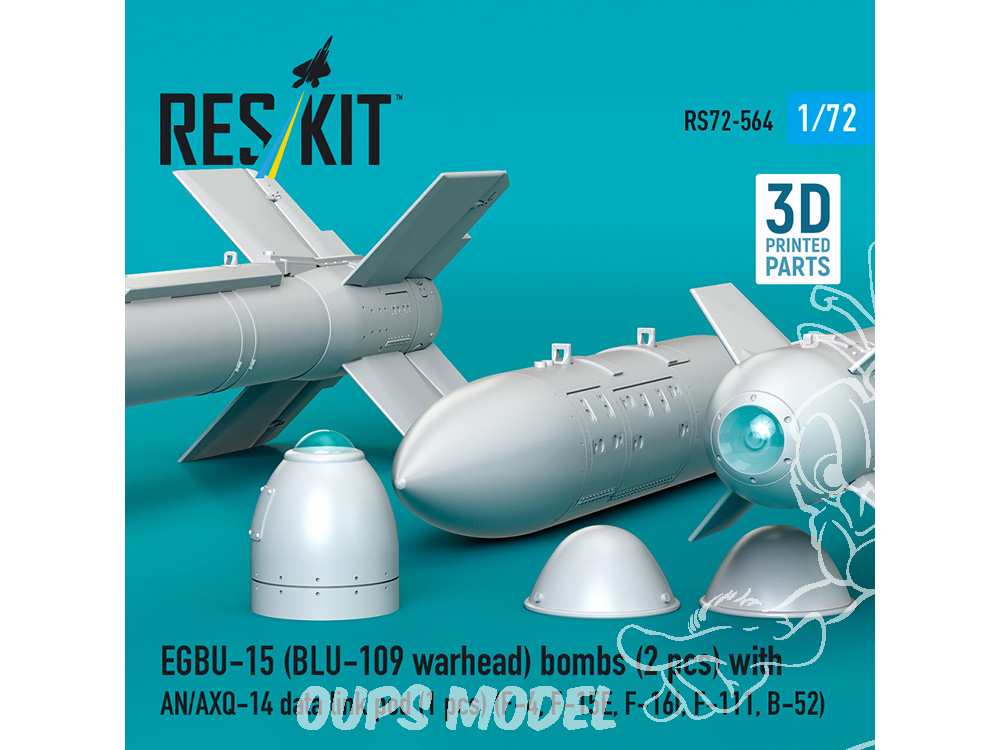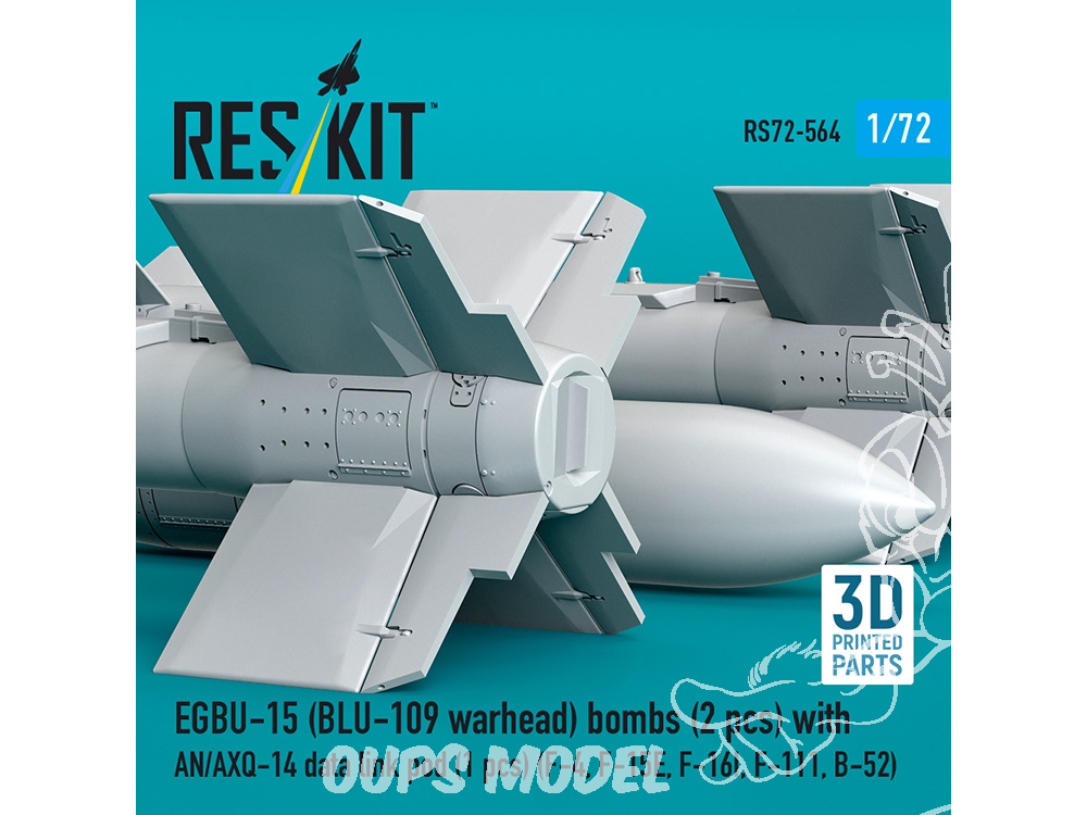 ResKit kit RS72-0564 Bombes à ogive EGBU-15 BLU-109 2 pièces, avec pod de liaison de données AN/AXQ-14 1 pièce 1/72