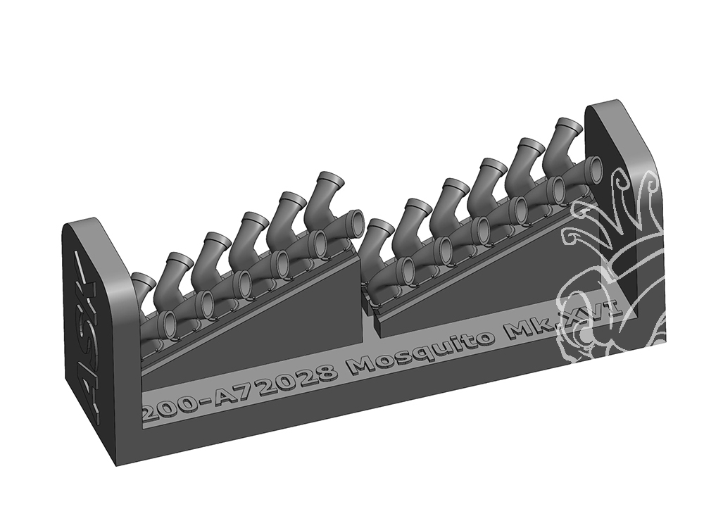 Pour les possesseurs du Mosquito Special Hobby au 1/72, nous avons développé un accessoire spécialement conçu pour améliorer significativement l’apparence du modèle : des échappements moteur finement détaillés.
