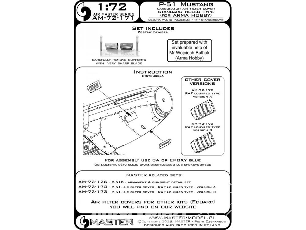 Master Model AM-72-171 Couvercle de filtre à air de carburateur P-51 Mustang type à trous standard pour Arma Hobby 1/72