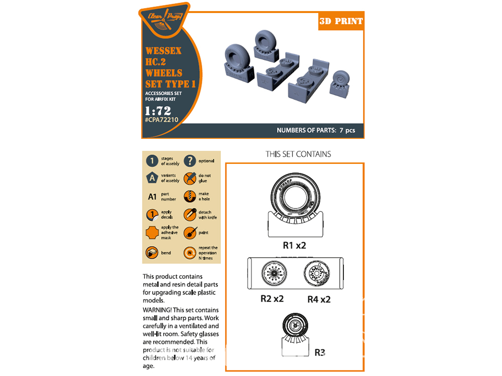 Clear Prop kit d'amelioration Hélico CPA72210 Set de Roues du Wessex HC.2 pour kits Airfix 1/72