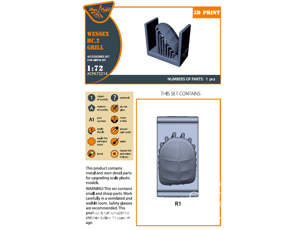 Clear Prop kit d'amelioration Hélico CPA72214 Grille d'entrée d'air du Wessex HC.2 pour kits Airfix 1/72