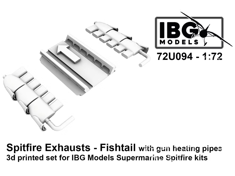 IBG maquette avion 72U094 Échappements type queue de poisson Supermarine Spitfire avec tuyaux chauffage canons kit IBG 1/72