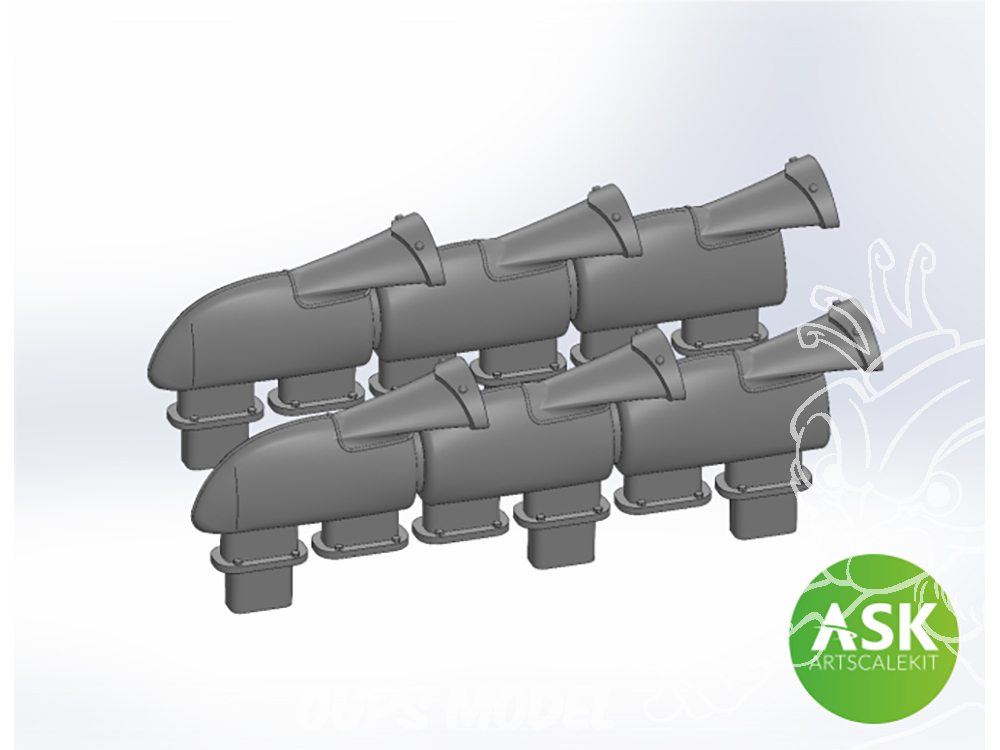 1/72 Échappements Spitfire Mk.Vb type fishtail – pour Eduard, impression 3D ASK, réf. 200-A72035