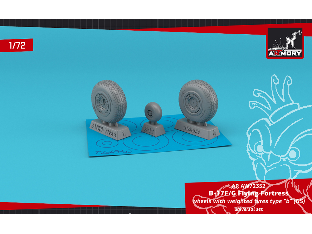 Armory Models kit d'amélioration avion AW72352 Roues avec pneus écrasés Type "B" (GY) B-17F/G Flying Fortress 1/72