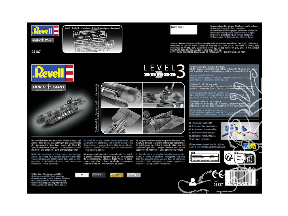 Le kit de construction du modèle réduit du sous-marin spécial allemand Molch, très détaillé, t'apporte un morceau fascinant de l'histoire de la marine directement sur ta table de bricolage. Fabriqué à une échelle précise de 1:72, ce kit te permet de créer un modèle authentique de l'un des développements de sous-marin les plus innovants de la Seconde Guerre mondiale.
