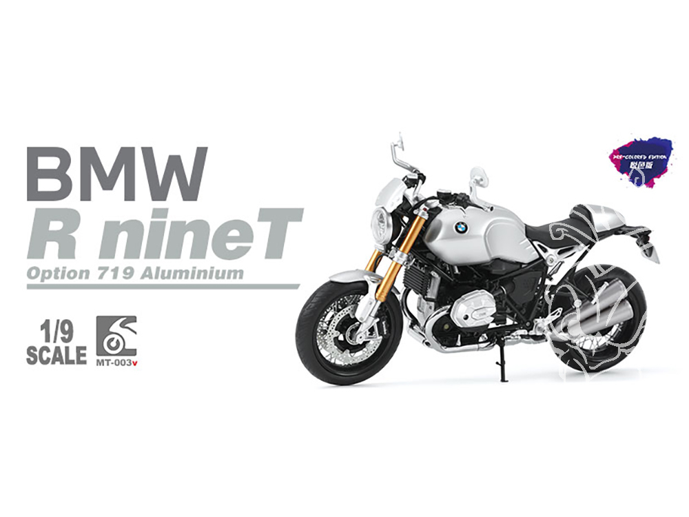 Dernier produit sous licence officielle BMW, ce kit de maquette MENG MT-003v 1/9 BMW R nineT Option 719 Aluminium (Édition pré-peinte) allie à la perfection le design classique de cette moto à des techniques de pré-peinture. L'apparence saisissante et les détails les plus fins sont ainsi reproduits avec une grande précision. Sans colle ni peinture supplémentaire, l'assemblage est simple et permet d'obtenir un résultat réaliste et raffiné.
