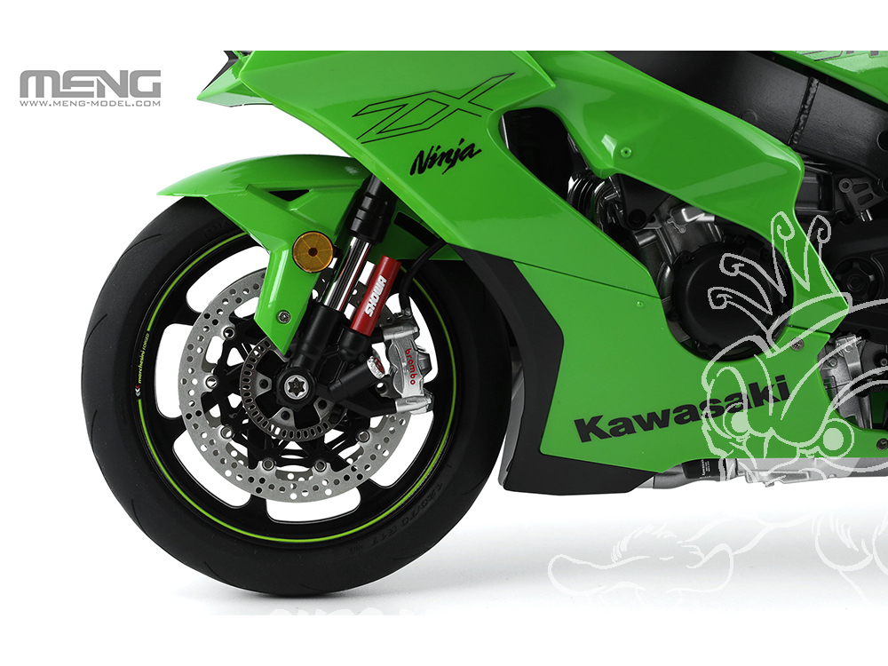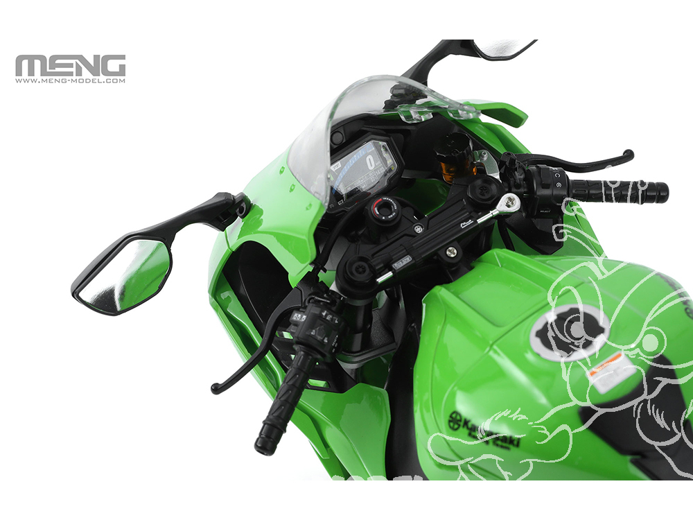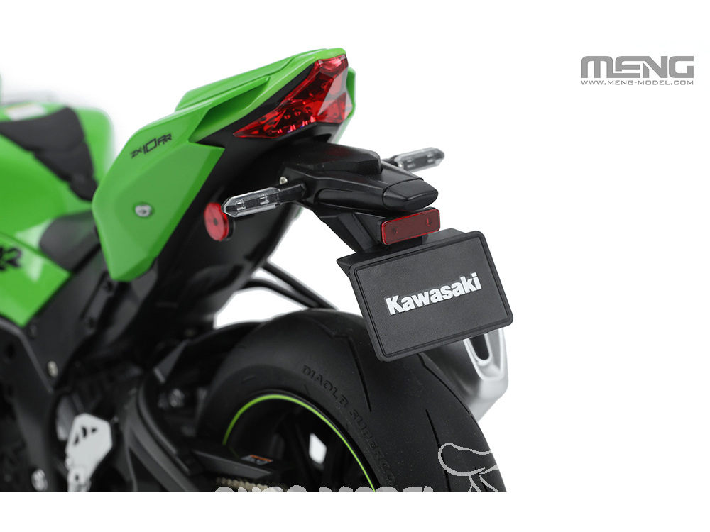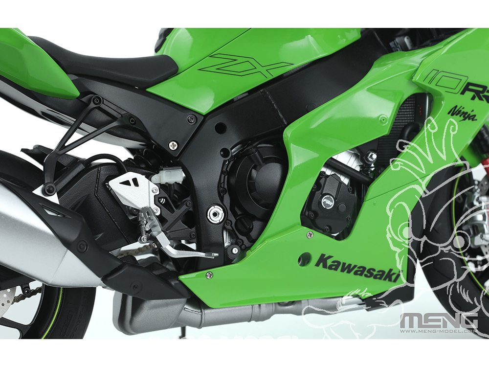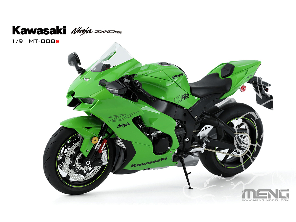 Dernier produit MENG sous licence officielle Kawasaki, le modèle MT-008 1/9 Kawasaki Ninja ZX-10RR perpétue la tradition MENG en matière de maquettes de motos, avec un design aérodynamique impressionnant et une attention méticuleuse aux détails. Découvrez ci-dessous ses caractéristiques principales.