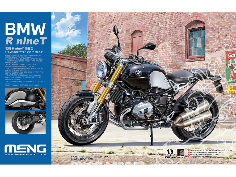 Ce modèle Meng 1/9 MT-003 BMW R NineT est un kit officiel sous licence.