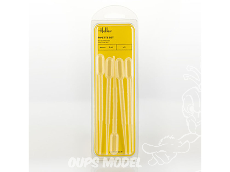 Set de cinq pipettes de 2ml, parfaites pour l'application précise de peintures et de diluants. Les pipettes sont graduées en millilitres pour un dosage précis.