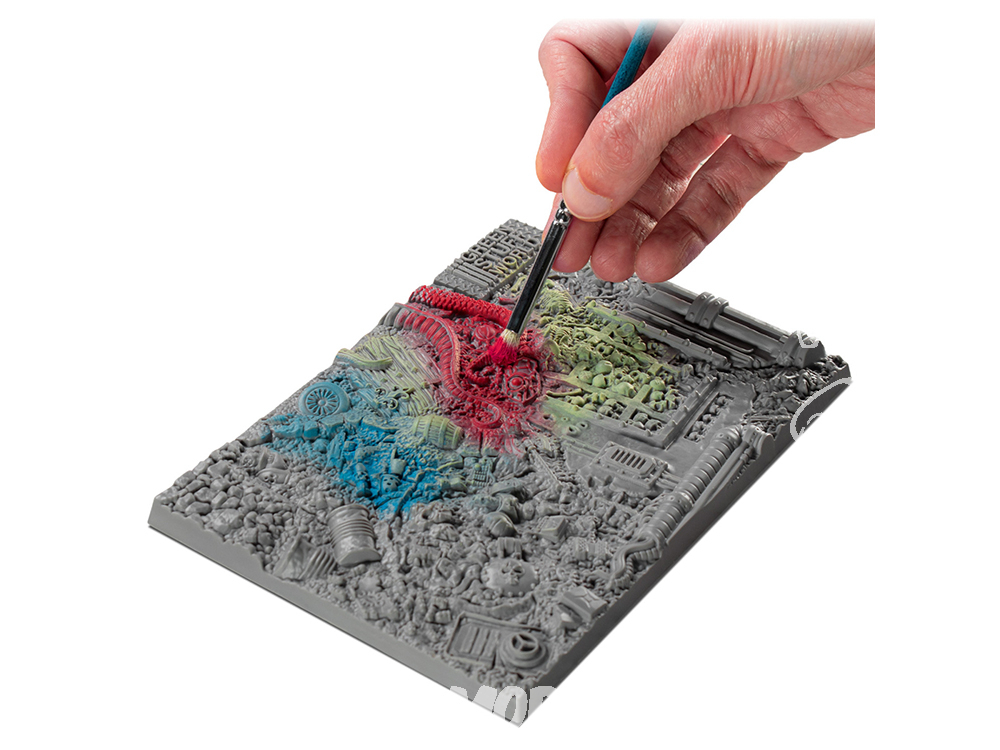 Dans le domaine du modélisme et de la maquette, cet outil est particulièrement efficace. Les artistes qui travaillent avec des détails minutieux et des applications de couleurs précises, comme sur les Gundams, les trains, les figurines de wargames ou les dioramas, apprécient la séparation nette et le large espace de mélange des alvéoles. La surface non poreuse permet de conserver l'intégrité des peintures spécialisées, telles que les lavis et les peintures métalliques, qui sont fréquemment utilisées dans ce domaine.
