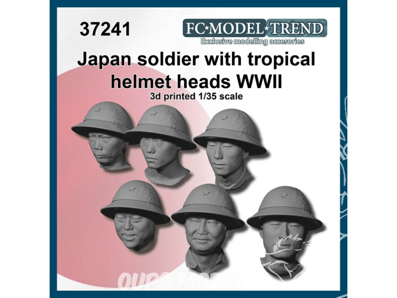 FC MODEL TREND accessoire résine 37241 Têtes Japonaises avec casque tropical WWII 1/35