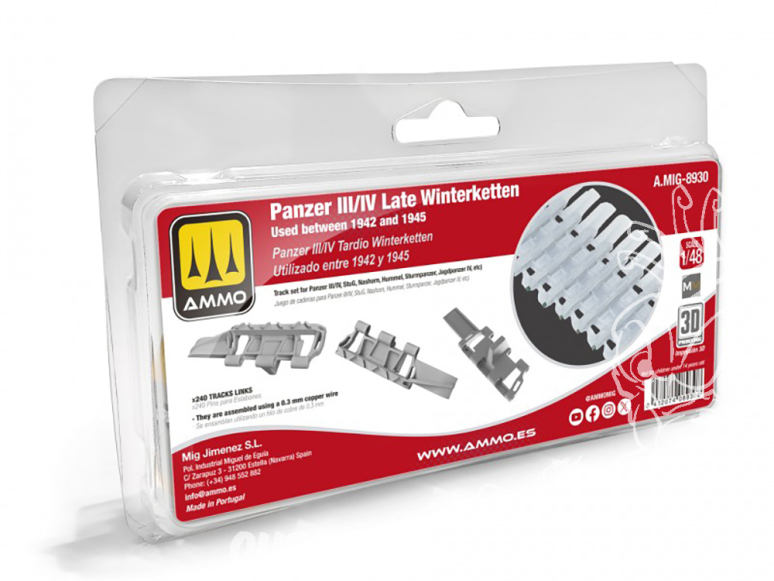 Ammo Mig 8930 Set chenilles Panzer III/IV Late Winterketten utilisé entre 1942 et 1945 3D 1/48