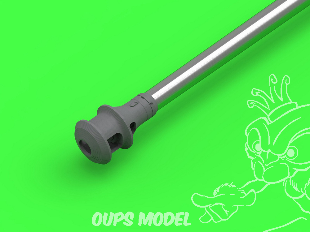 L'ensemble comprend un canon de fusil en aluminium tourné et un frein de bouche imprimé en 3D