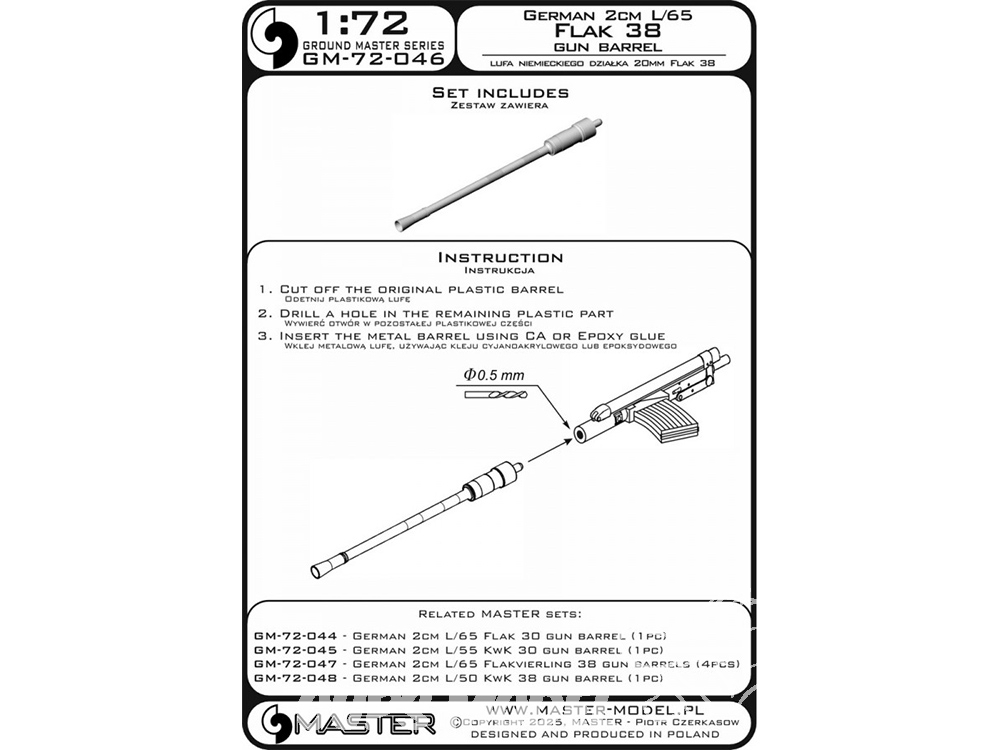 Master Model GM-72-046 Canon de canon allemand Flak 38 de 2 cm L/65 1 pièce 1/72