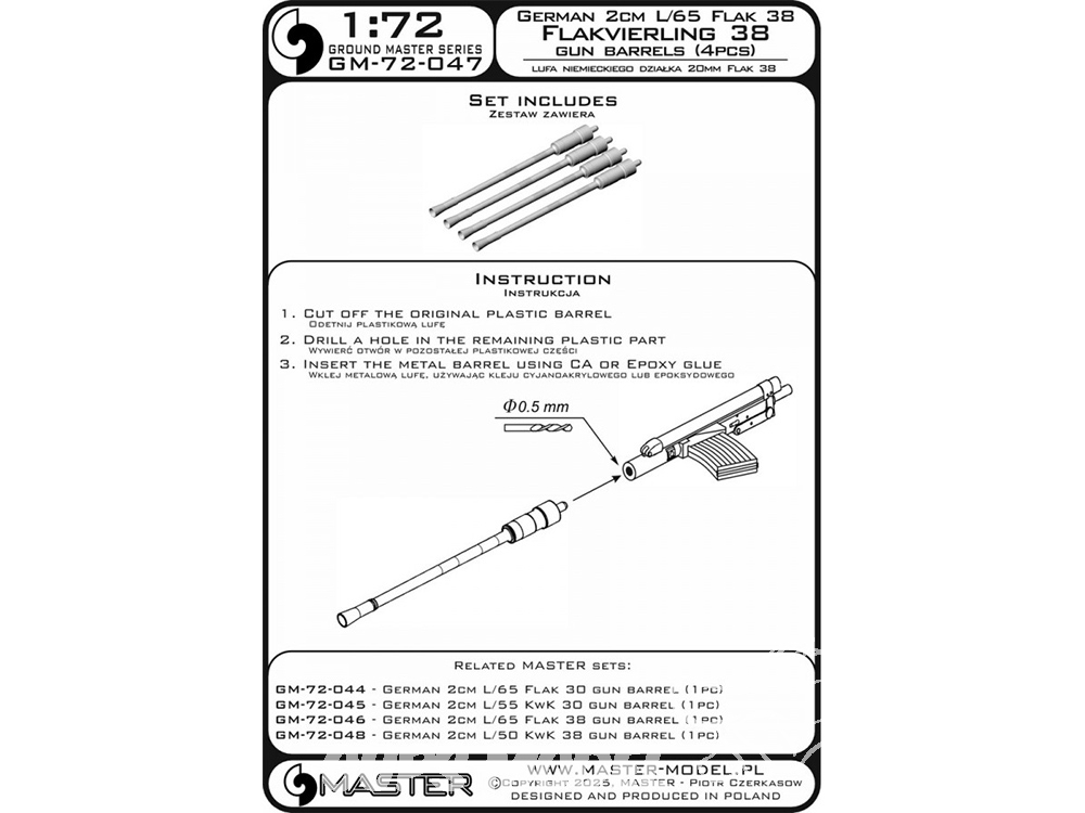 Master Model GM-72-047 Canons de Canon allemands de 2 cm L/65 Flak 38 et Flakvierling 38 Lot de 4 1/72