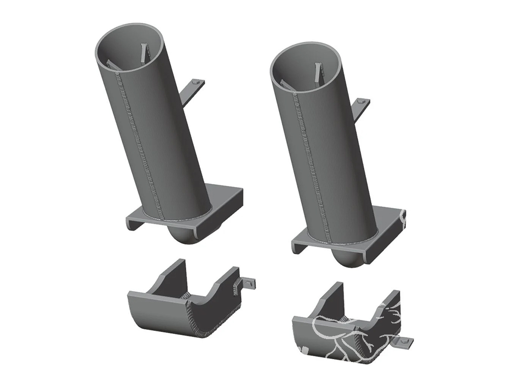 Ensemble de 4 Flammenvernichter pour les versions tardives des Pz. IV / StuG IV / Möbelwagen / Ostwind / Panzer IV (70) A/V et autres véhicules. Ce set comprend 2 tubes droits avec supports blindés ainsi que 2 tubes capotés avec supports blindés. Nous l’avons désigné comme le type A.