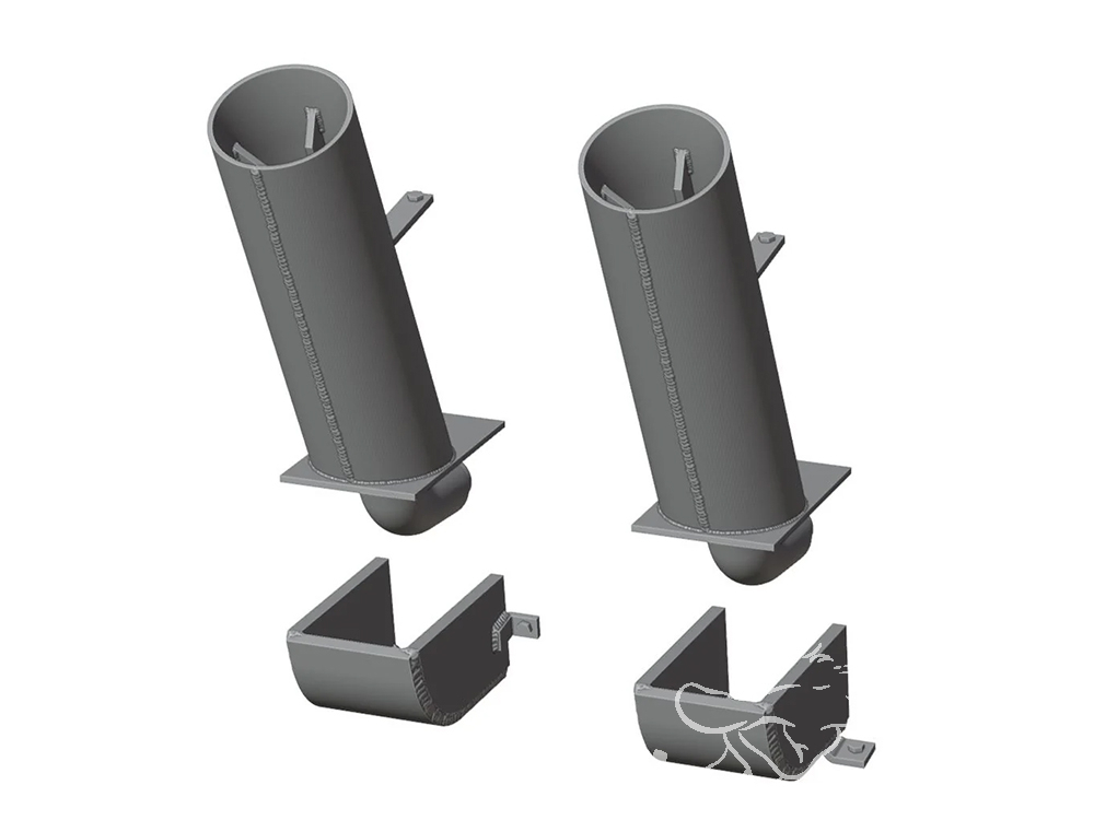 Ensemble de 4 Flammenvernichter pour les versions tardives des Pz. IV / StuG IV / Möbelwagen / Ostwind / Panzer IV (70) A/V et autres véhicules. Ce set comprend 2 tubes droits avec supports blindés ainsi que 2 tubes capotés avec supports blindés. Nous l’avons désigné comme le type B (style de support blindé différent).